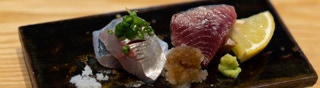 本日のお造り2種盛り *井上醤油 こはく 樺島製塩所 天然塩